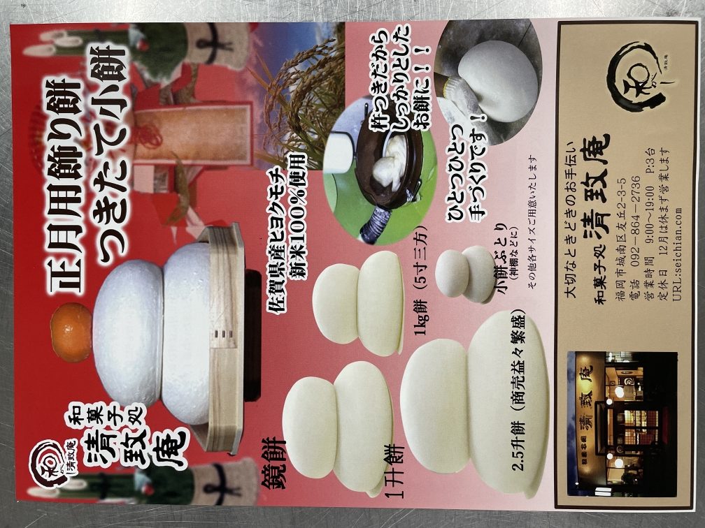 毎年好評をいただております年の餅は、今年の新米(佐賀県産ヒヨクモチ)