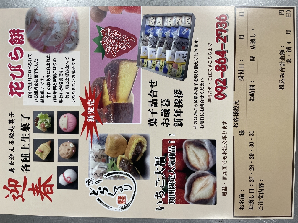 ・ ご注文は、店頭、お電話、FAX、注文フォームより、お願いします。